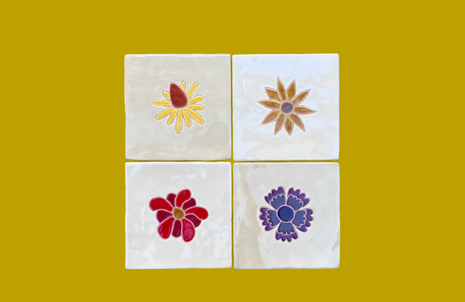 Flower Collection, each 10x15cm, handmade tiles (2023)